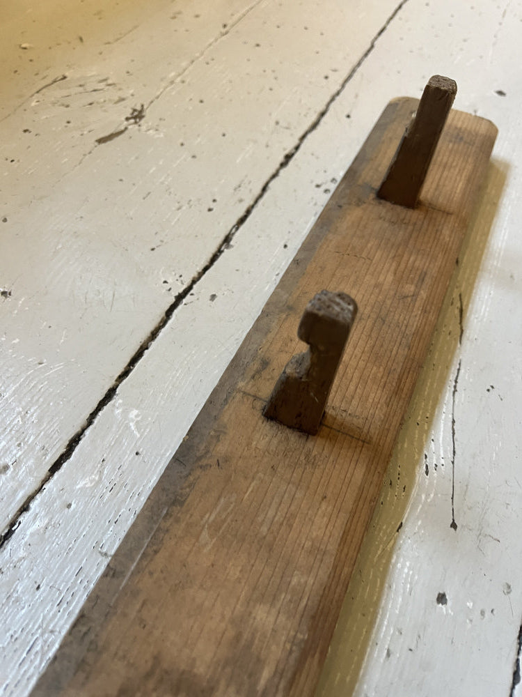 - Materiale: Tre, den ene knaggen er noe ødelagt, se bilde